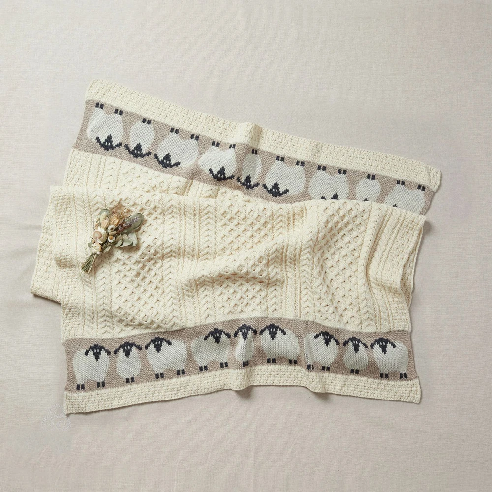Ein schicker Überwurf mit Schafmotiven für zuhause oder in den Kinderwagen.